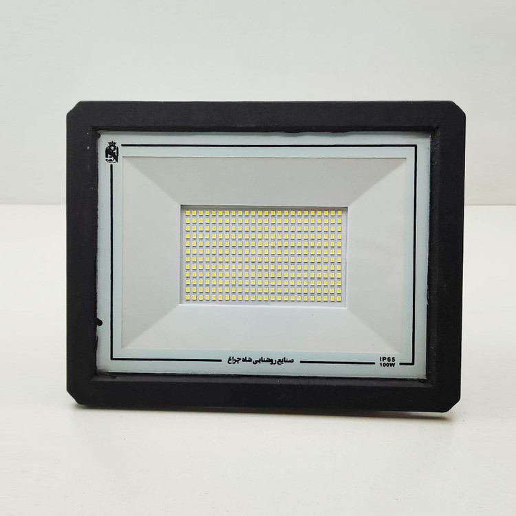 نورافکن و پرژکتور ال ای دی 100 وات شاهچراغ سری آبان از پروژکتور های تخت ایرانی می باشد. رنگ نوردهی این محصول در سه طیف نوری مهتابی(سفید)، آفتابی(زرد) و استاندارد یا طبیعی(یخی، بین سفید و زرد) تولید و عرضه می شود. کیفیت ساخت خوب همراه قیمتی مناسب باعث شده تا این محصول با اینکه سری جدید از محصولات این شرکت می باشد ولی بسیار پرفروش باشد. هیت سینگ پشتی با وزن و کیفیت مناسب باعث شده تا حرارت از چیپ های ال ای دی به خوبی دفع شود و دوام خوبی داشته باشد. همچنین بر روی بدنه فلزی از رنگ پودری الکترواستاتیکی استفاده شده تا در برابر خش و خوردگی مقاومت کافی را داشته باشد. استاندراد محافظتی IP65 باعث شده تا بتوان از محصول در فضای خارجی در معرض باران و رطوبت استفاده کرد. نوع چیپ های ال ای دی محصول از نوع LED SMD می باشد. تعداد چیپ های ال ای دی 288 عدد می باشد و از نوع 2835 می باشد. این تعداد چیپ ال ای دی بر روی پروژکتور 100 وات باعث شده تا ال ای دی ها حرارت کمی تولید و نوردهی خوبی ساطع کنند. به لطف اندازه و وزن مناسب محصول نصب و حمل آن به سهولت انجام می شود.